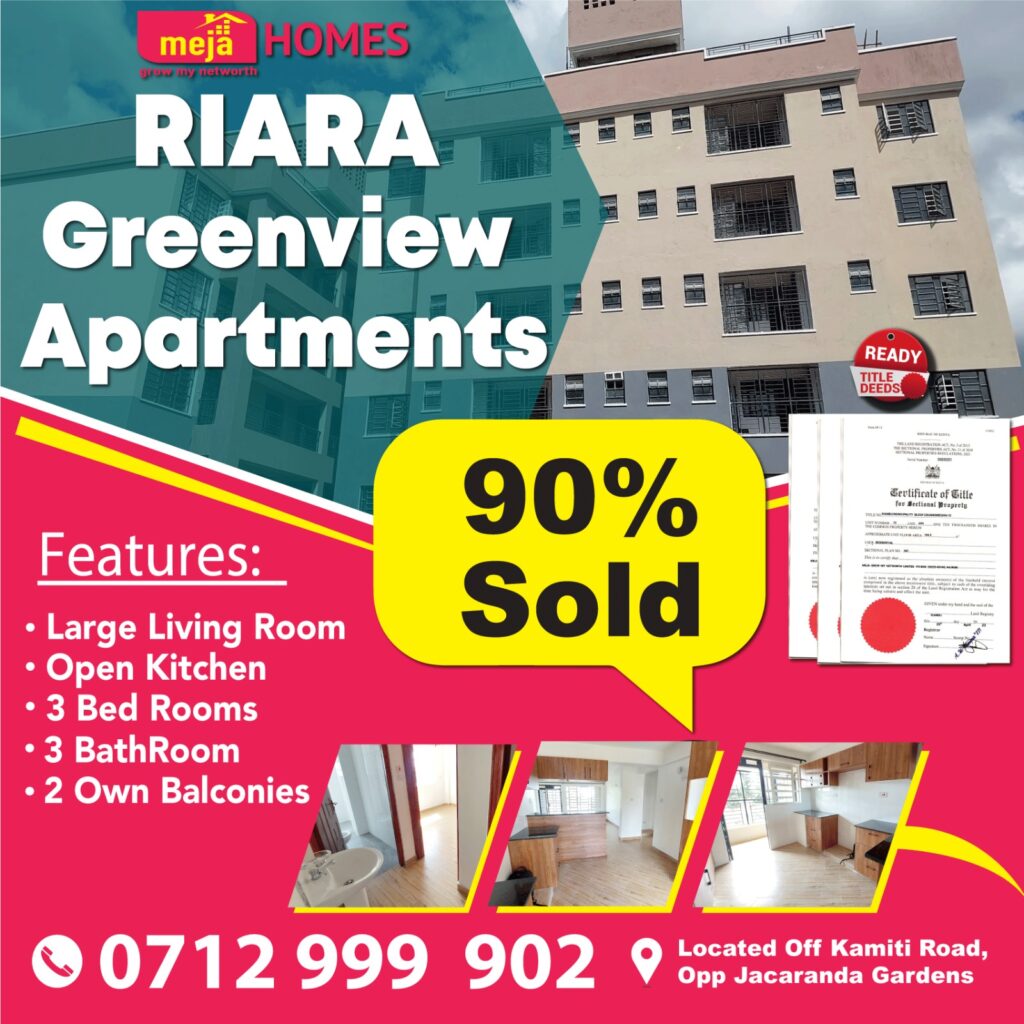 Riara Greenview Apartments are located Strategically at the heart of Kahawa West, Lower Jacaranda Gardens, just a few meters off the tarmac. The serenity of the apartment is top notch with great views of the greenery around, quiet, the whole property drains well to the gate, thereby posing zero risk to flooding. The Apartments are close to TRM, Jacaranda Gardens, Estate, and KU Referral Hospital.